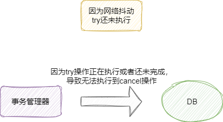 空悬挂问题:基于上述场景,此时悬挂的try的操作开始执行,可是业务上我们明明已经回滚,而这份try的数据却落到库中,导致部分数据被锁定,业务上出现不一致问题。