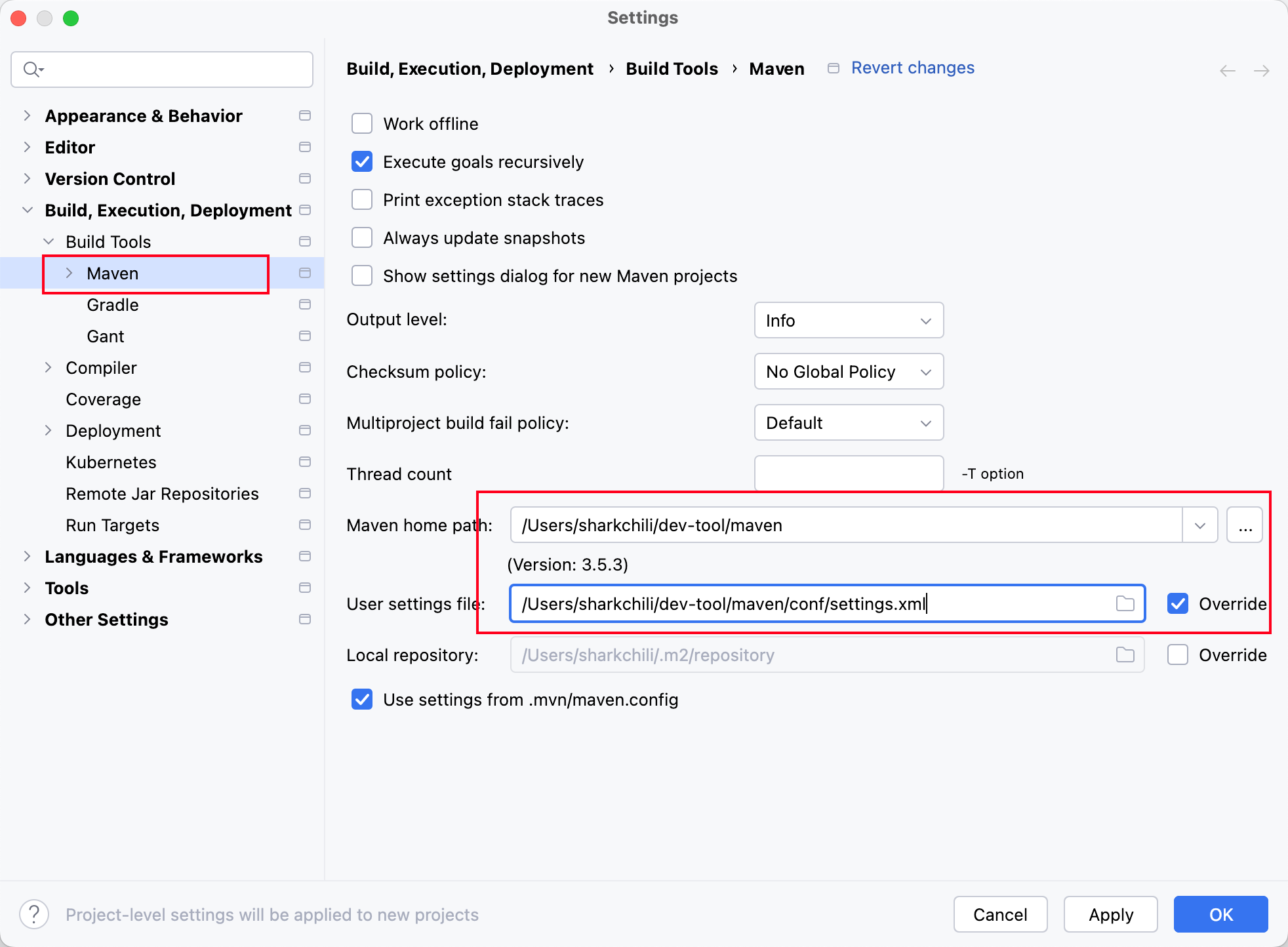 mac系统配置操作有类似,唯一区别就是设置需要通过File选项依次定位Setting for new project: Settings | Build, Execution, Deployment | Build Tools | Mavenidea配置初期通过settings for new project选项设置默认maven home: