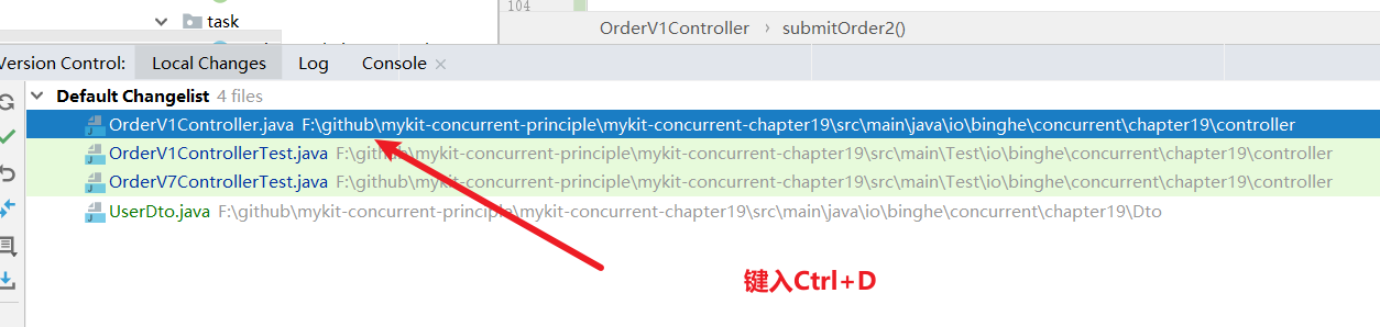 对着版本控制中现实变化的文件Ctrl+D即可