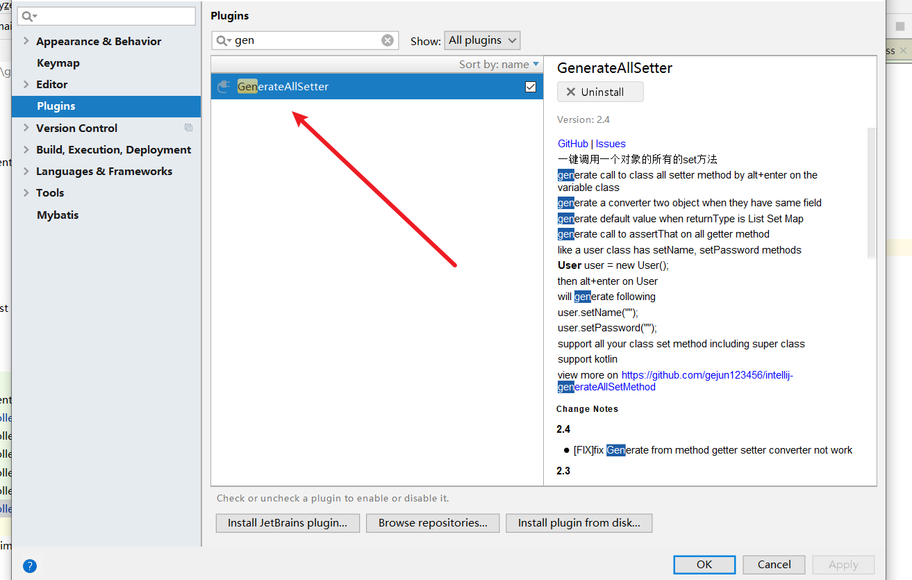 有时候我们在开发中会遇到一个对象需要set多个值,我们就可以安装generateAllSetter这个插件: