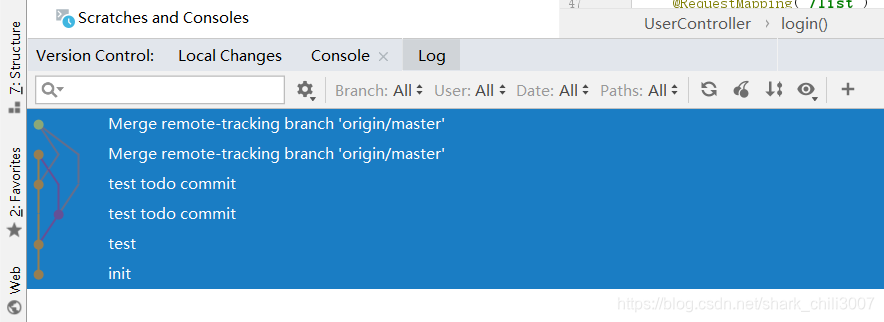选择user就可以查看筛选指定人对项目的改动