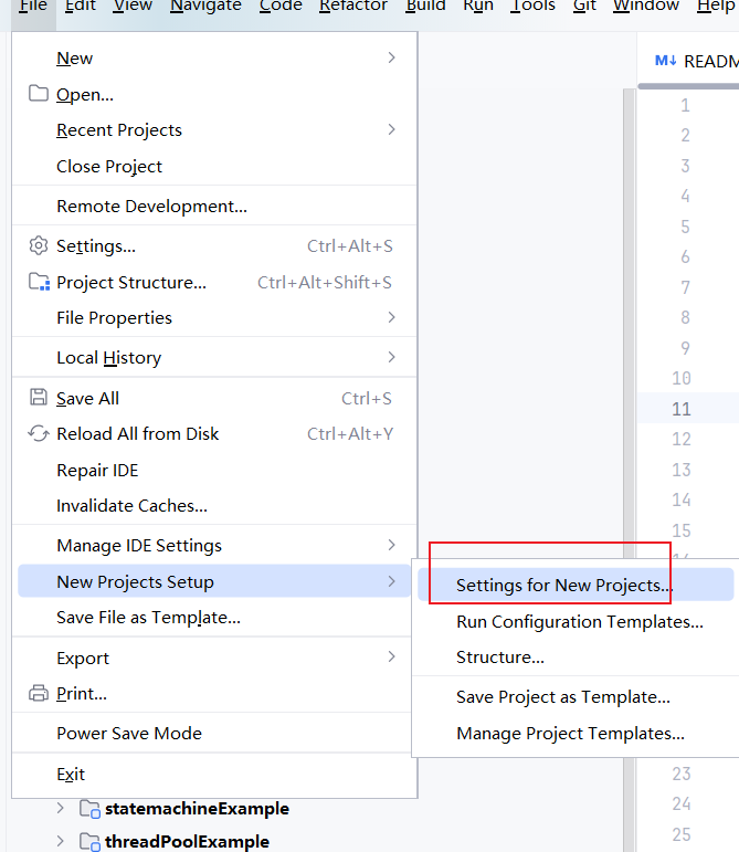 当然为了方便后续项目的使用,我们也可以通过全局设置的方式设置统一编码格式,即通过File | New Projects Setup| Settings for New Projects..进入新项目的通用设置: