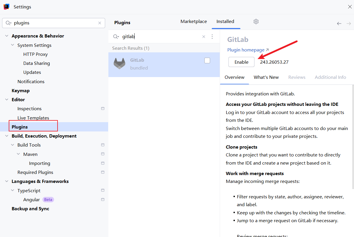 解决方式也很简单,通过File | Settings | Plugins找到gitlab插件,将其disable即可,完成配置后Gitlab插件就如下图所示: