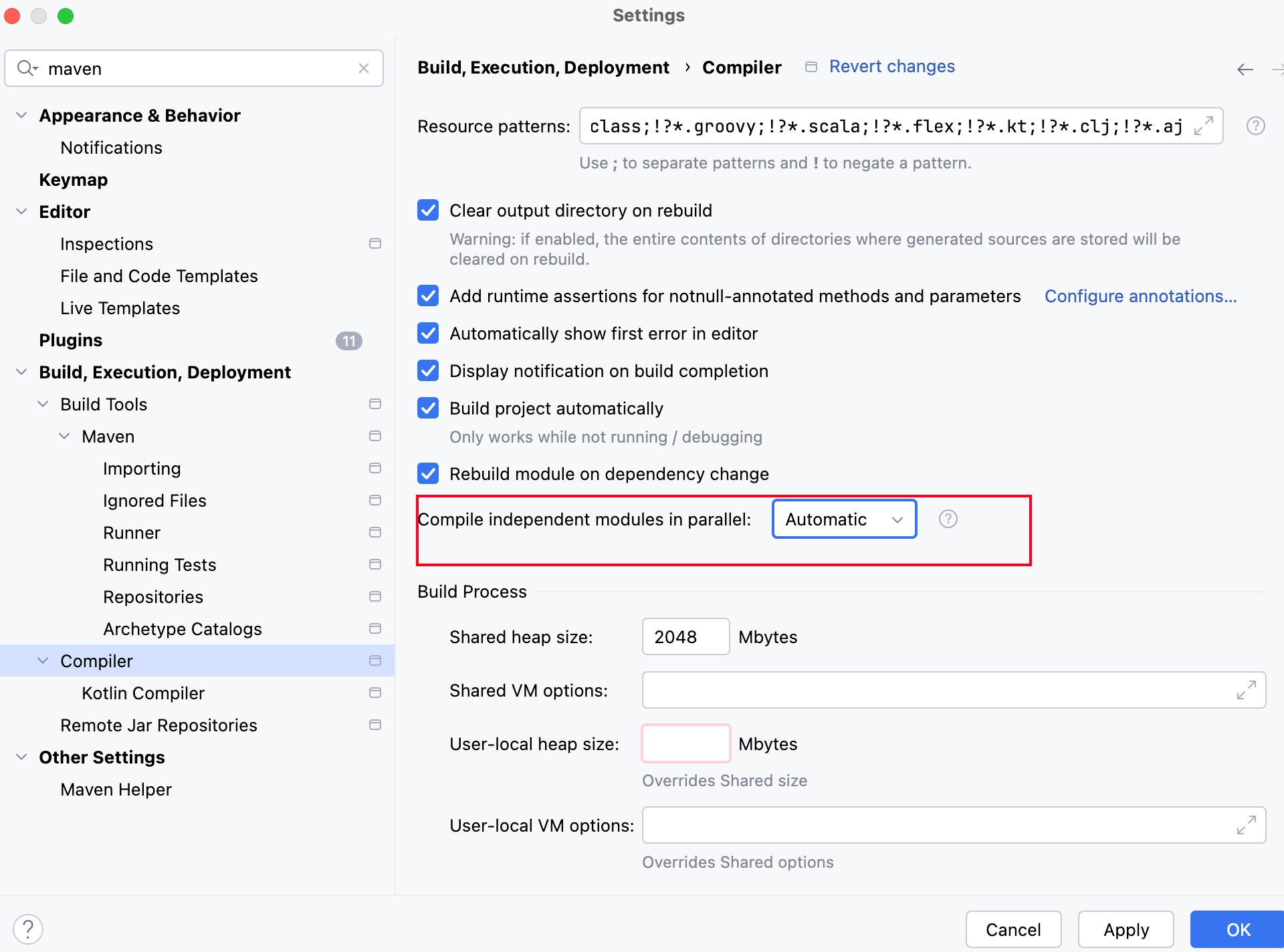基本现在大部分人的笔记本都是配备32G的开发内存且现代企业级项目编译都需要大量内存,一般情况下,笔者建议初次安装idea后启用一下增量编译,通过Settings | Build, Execution, Deployment | Compiler找到对应选项,将共享编译进程堆的大小设置调大一些(默认是700m,笔者这里直接设置为2G):