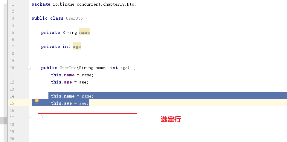 当你编码的时候常遇到setname,setage等情况,我们可以CTRL+D第一个set语句复制多句进行修改,它的复制位置将会出现在所复制的行的下方