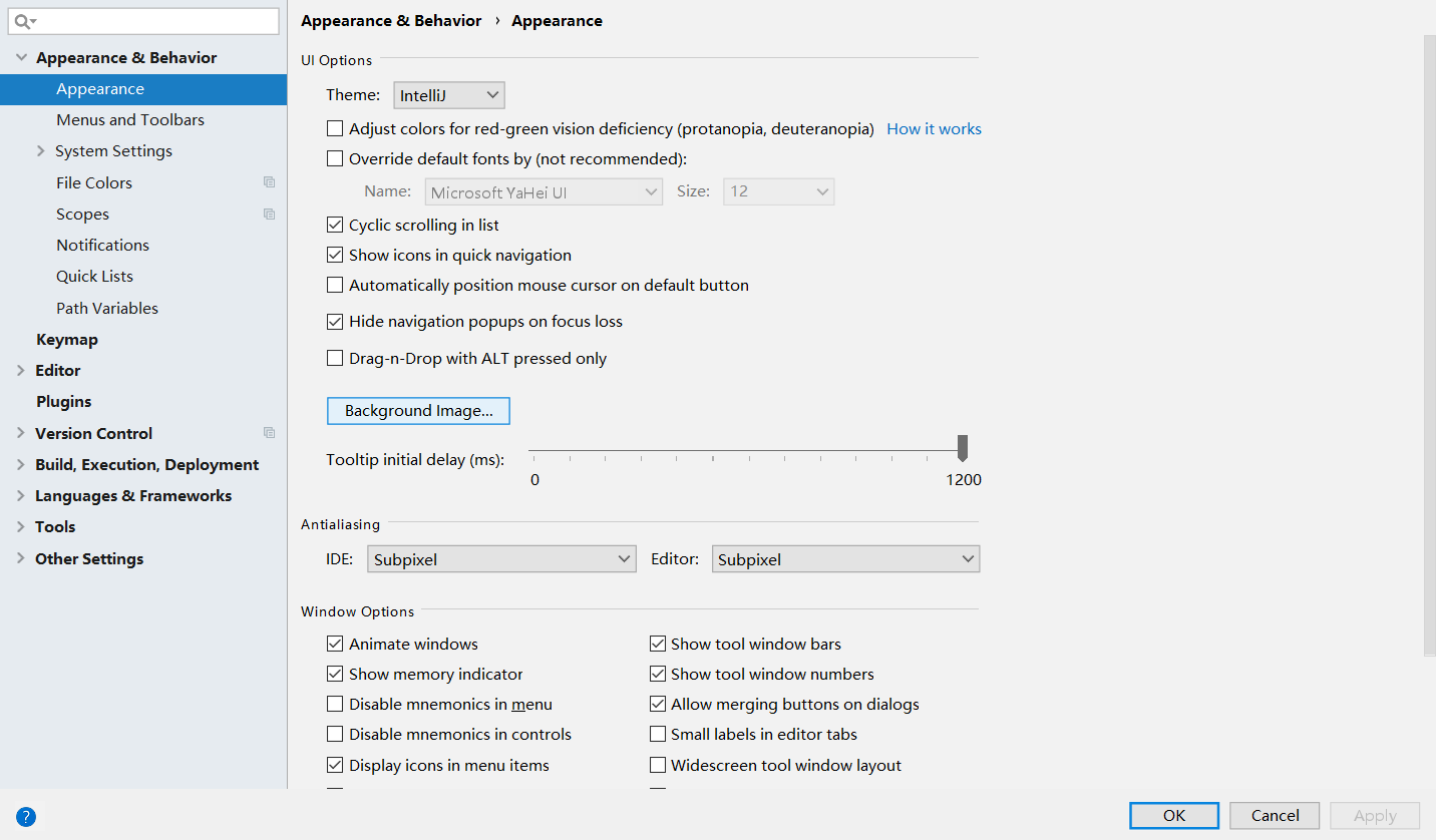 File | Settings | Appearance & Behavior | Appearance - 找到