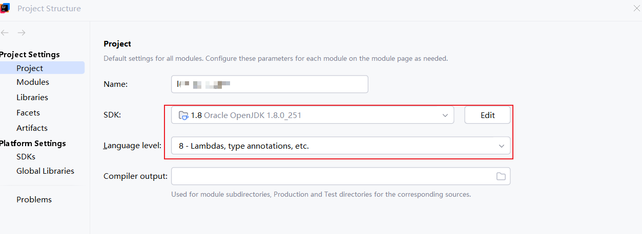 默认情况下最新版的IDEA的language level直接从JDK22开始,所以我们日常打开项目时需要记得将JDK版本设置为8(笔者现在默认版本为11),同样的我们通过File |Project Structure|Project找到JDK的所有配置将其设置为JDK8版本即可: