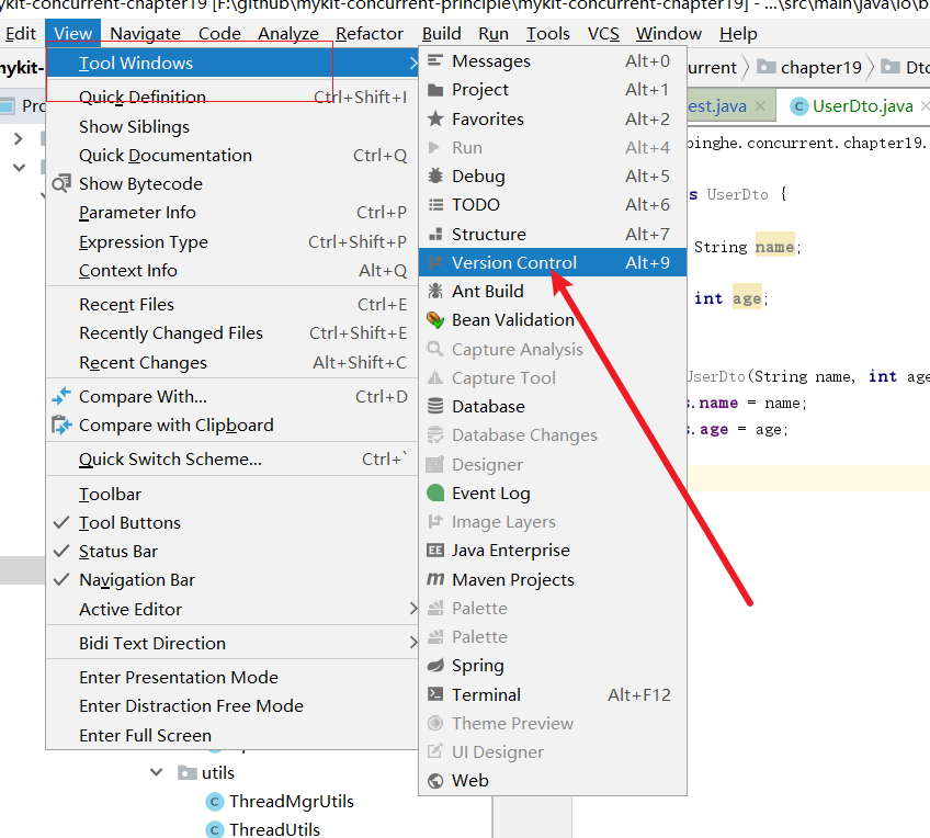 如下图,找到version control即可