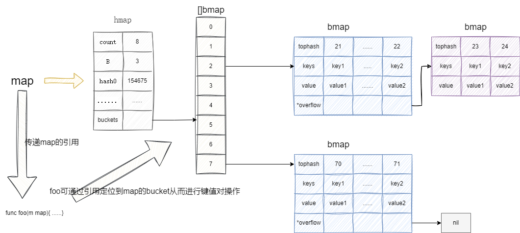 就像下面这段代码一样,我们通过foo修改m[1]的值最终是会改为外部传入的映射的键值对的: