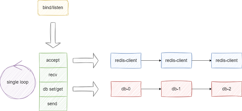 socket接收读写请的字符串将其转换内存数据库操作。 - 完成内存作后将操作结果