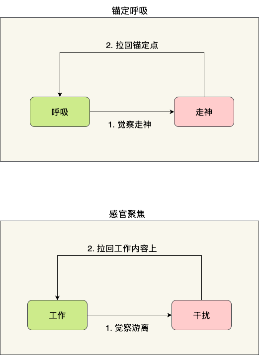 - 不需要控制呼吸节奏,也不强迫自己不能走神