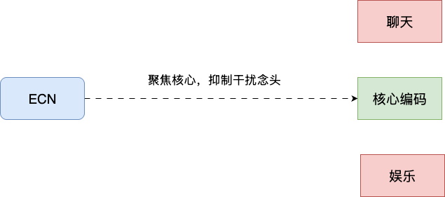 - 抑制干扰念头("群里消息不重要,先完成这个功能再说")