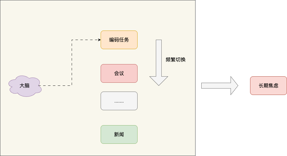 现代工作节奏快、信息爆炸,我们要处理的事务非常多。工作中需要在不同任务间频繁切换——写文档时突然弹出即时消息要回复,开会时还在惦记邮件没回,多任务处理让大脑始终处于"待命"状态,无法真正放松。这种持续的多线程运转,会让我们在日常生活中也频繁感到焦虑、急躁,甚至容易发怒。