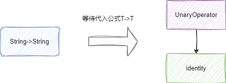 话不多说,不难看出上文这种传入String返回String的方法,我们完全可以使用UnaryOperator函数式接口,它的函数式签名为(T)->T,很明显将我们的String类代入是成立的: