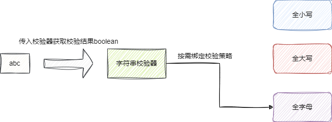 不同的业务对于字符串有着不同的匹配规则,例如:长度是否大于10、是否全是大小、是否是电话号码等,为了保证规则的复用,我们通常会采用策略模式封装这些规则: