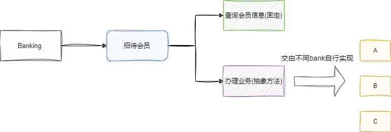 模板方法的理念是对于固化模板自实现,然后将个性化业务下沉到不同业务场景自行开发,我们以银行找到会员为例,其大体步骤为: