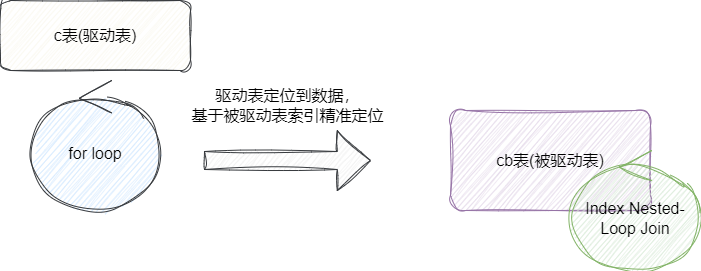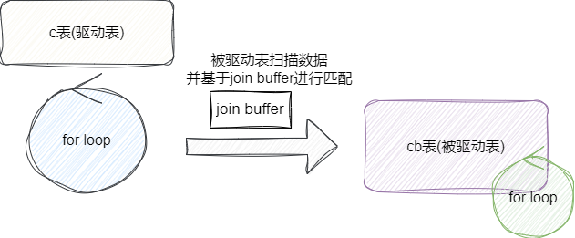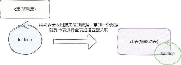 Simple Nested-Loop Join:这也就是我们上文中两张关联表没有加索引关联查询,得到所有驱动表c的数据后,直接给cb表走全表扫描定位匹配,极端情况下要查询count(c)*count(cb)次,也就是我们传说中的时间复杂度为O(n^2):