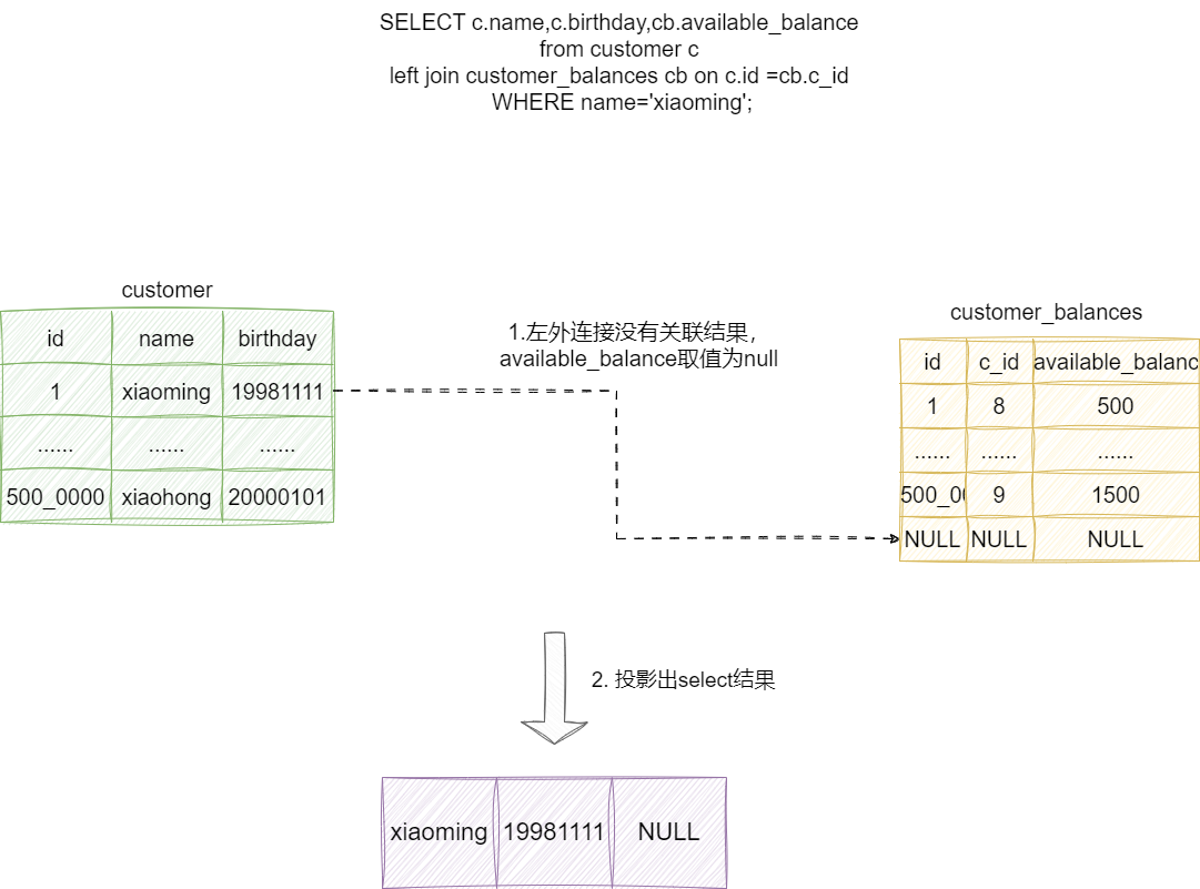 回答这个问题,我们首先需要了解左外连接的工作机制,它本质上就是基于驱动表(也就是上文的c表)的id与被驱动表cb进行链接,如果cb没有数据则结果显示null: