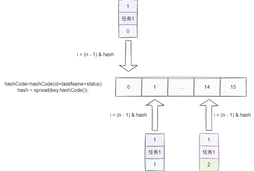 很明显出现这个问题的原因就是因为并发操作修改的status影响了hashcode计算结果,进而导致并发操作变得无效,因为id是全局唯一的,所以直接重写hashCode和equals方法,让Task对象的计算和比对都通过id进行: