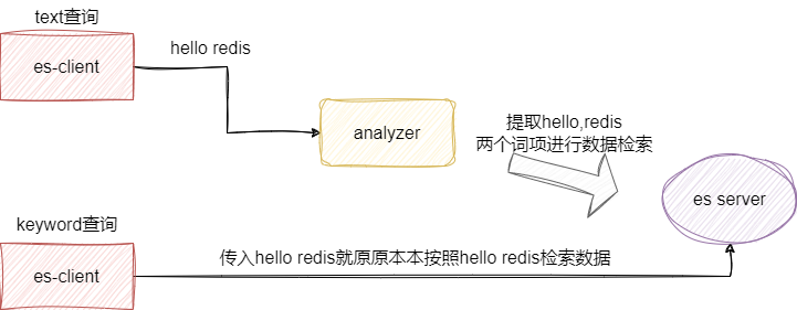 通过get请求发现ip:9200/key_word_index/_search,必须传入下面指定keyword类型才能精准匹配到数据: