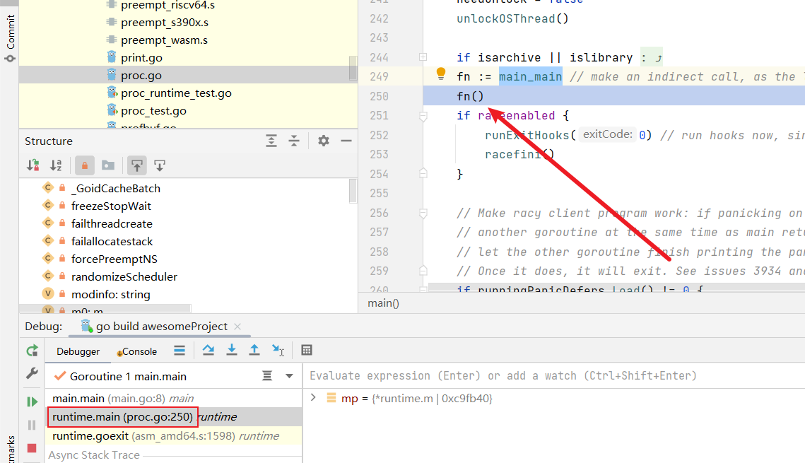 基于文章开头给出的代码断点,通过堆栈调用的信息可以看到,g0的main方法确实通过main_main定位我们编写的main方法并完成执行:
