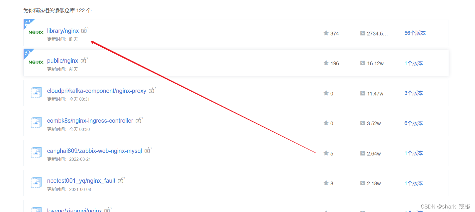 可以得到这样的结果。每一列的意思分别是 NAME:镜像仓库名称 DESCRIPTION:镜像仓库描述 STARS:收藏数 OFFICIAL:表这个仓库是否是官方仓库,若显示ok则说明是官方创建和维护的