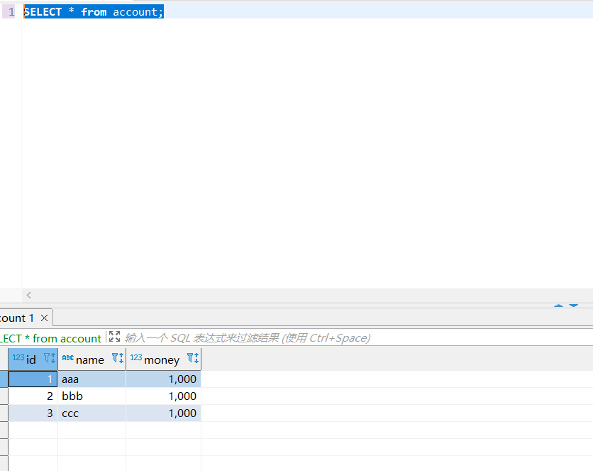 INSERT INTO `account` VALUES ('1', 'aaa', '1000');