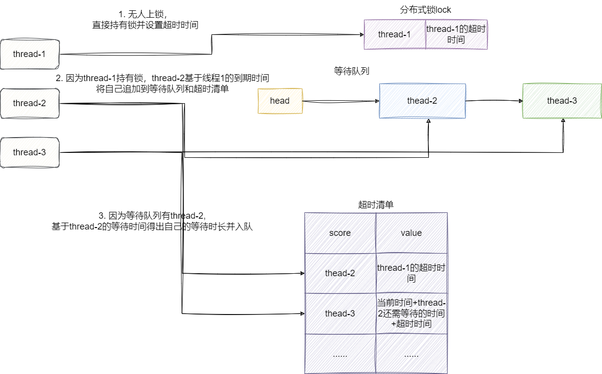 可以看出,redisson通过列表和超时清单按序管理了各个线程的等待实现,保证了分布式锁争抢的公平性: