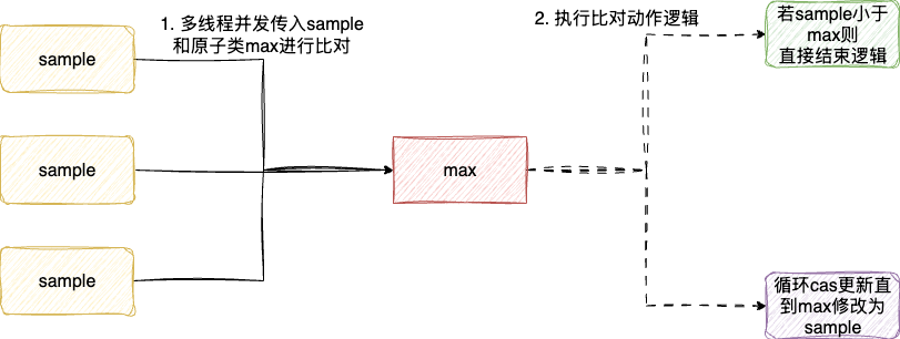 //sample大于当前维护的max则不断cas,若失败则比对再进行cas
