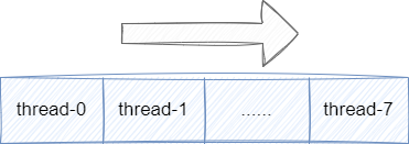 为了保证线程的公平调度,我们通常会采用轮询算法,假设我们有8个线程,按照轮询算法一次调用顺序为:线程0、线程1 ........线程7,然后才从线程0开始: