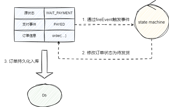 stateMachine.fireEvent(order.getOrderStatus(), OrderEventEnum.PAYED, order);