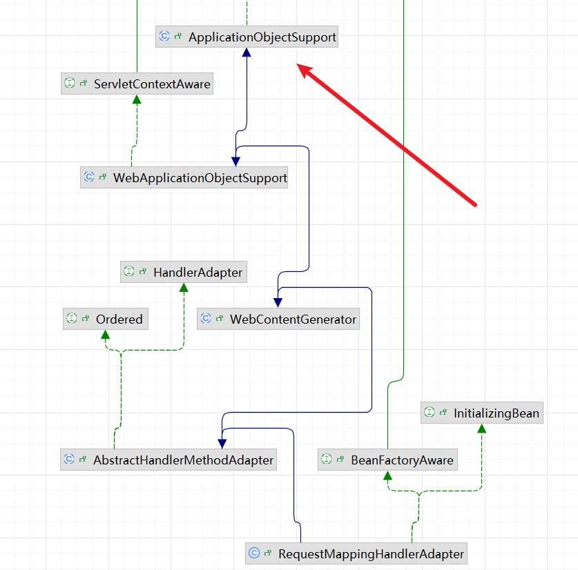 读过Spring MVC源码的读者可能都知道,每当又HTTP请求发送到web容器时都会进行请求进行映射转发处理时都会经过RequestMappingHandlerAdapter这个适配器上,查看RequestMappingHandlerAdapter的类图,可以看到它继承了WebApplicationObjectSupport,而该类有一个方法getApplicationContext它就可以直接获得Spring上下文,所以接下来笔者就演示如何通过tt指令获得RequestMappingHandlerAdapter从而调用getApplicationContext拿到上下文,开始各种骚操作。