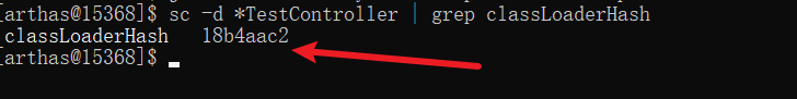 注意,某些场景下使用ongl表达式查看字段信息需要指明classLoader的hashCode,否则会报错,所以我们需要通过sc指令先获取当前类的hashCode: