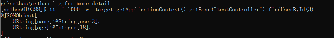 需要强调的是,tt 命令是将当前环境的对象引用保存起来,但仅仅也只能保存一个引用而已。如果方法内部对入参进行了变更,或者返回的对象经过了后续的处理,那么在 tt 查看的时候将无法看到当时最准确的值。这也是为什么 watch 命令存在的意义。