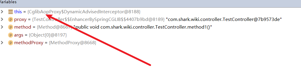 这就导致执行调用method1调用者是this,而不是cglib代理的增强类,如下图所示,正是因为调用者不是代理,导致代理根本不知道method1被调用了,所以事务就失效了