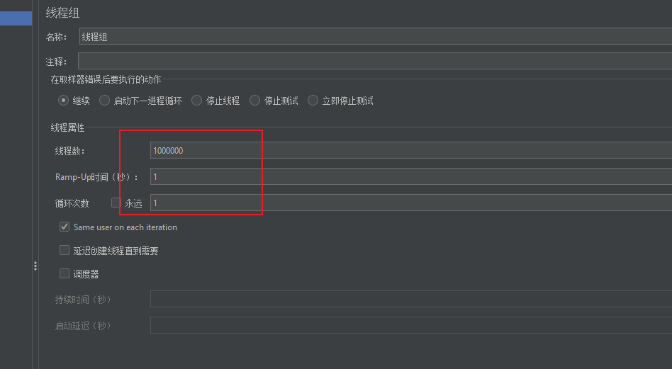 自此我们项目都编写完成了,我们不妨使用jmeter进行一次压测,可以看到笔者会一次性发送100w个数据包查看最终的收包数。
