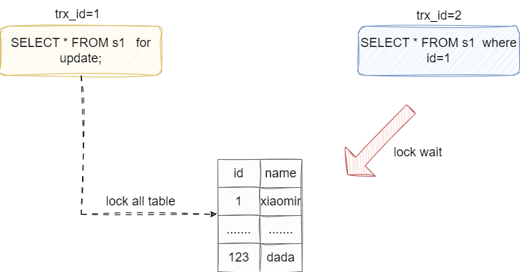 SELECT * FROM s1 WHERE id=1 for update;