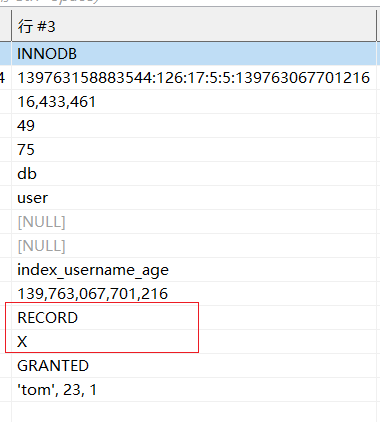 我们通过performance_schema.data_locks表可以看到,第一个事务针对tom数据上了一把行级写锁: