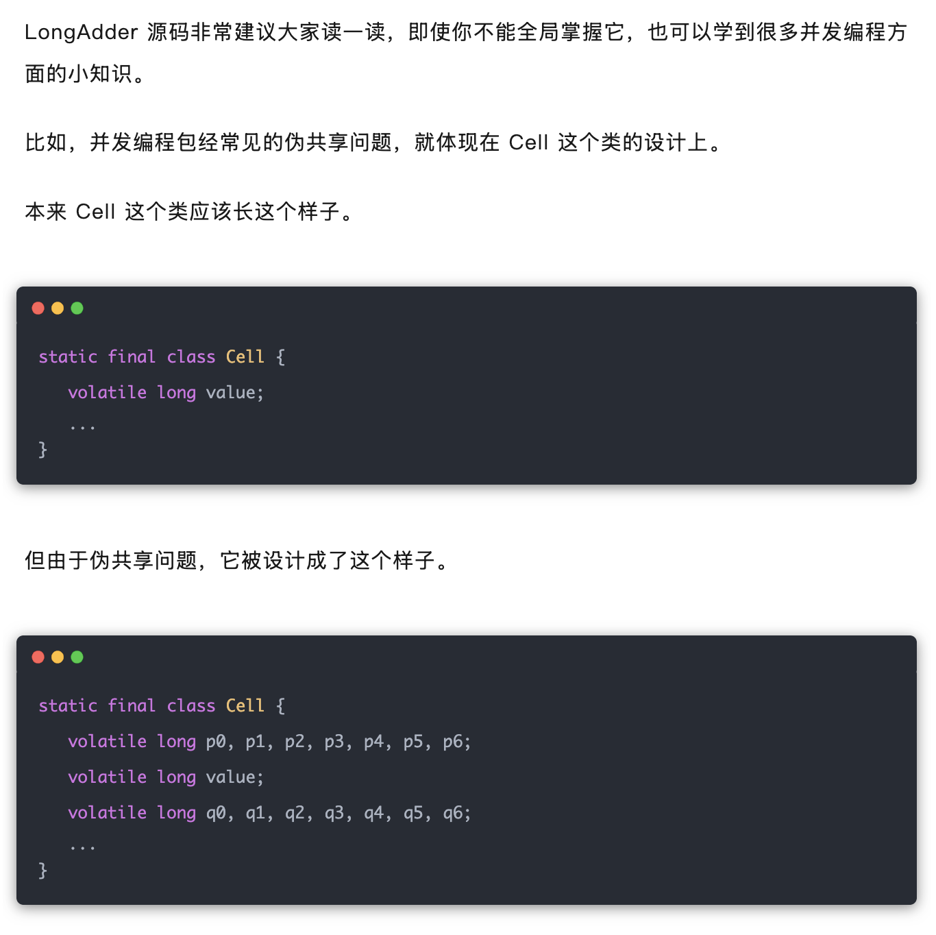 又比如这篇文章对于 LongAdder 源码讲解完成之后的总结: