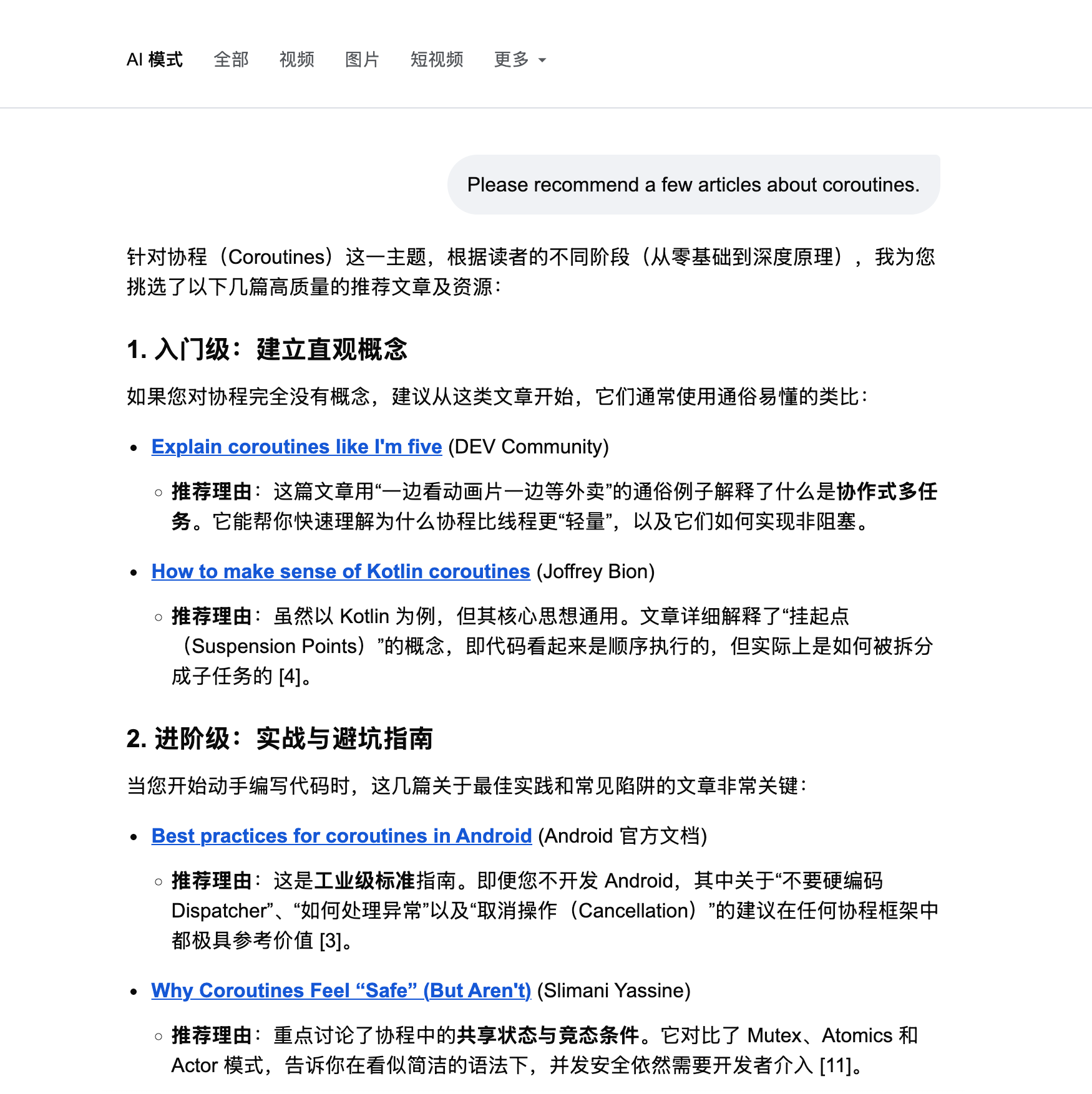 3. 谷歌 AI 模式:通过英文检索让 Google 推荐相关参考文献