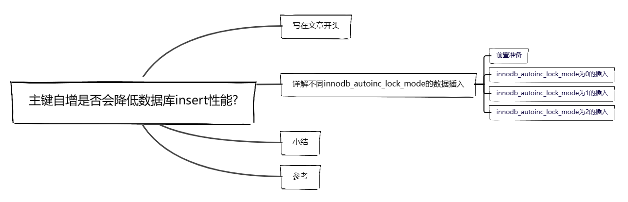 大部分文章都说UUID的随机性会的插入会导致节点分裂进而导致数据表整体性能下降,那么问题来了主键自增是否会降低数据库insert性能呢?这里笔者会通过设置innodb_autoinc_lock_mode这个参数演示不同级别下主键自增的内部工作机制及其性能表现。