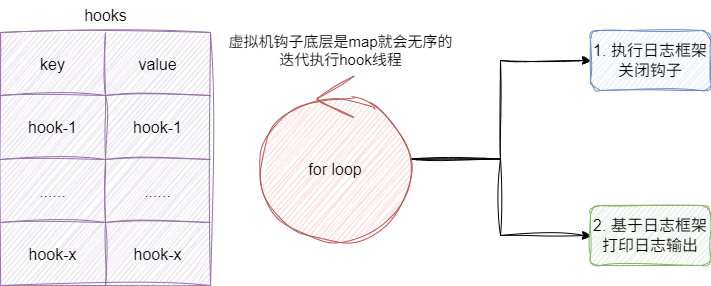 当触发虚拟机钩子关闭时,其内部就会针对hooks进行遍历并按照如下逻辑处理: