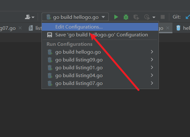 如果你希望能够指定输出目录的话,可以通过edit configuration来调整,还是以上面的代码为例,找到goLand的配置按钮