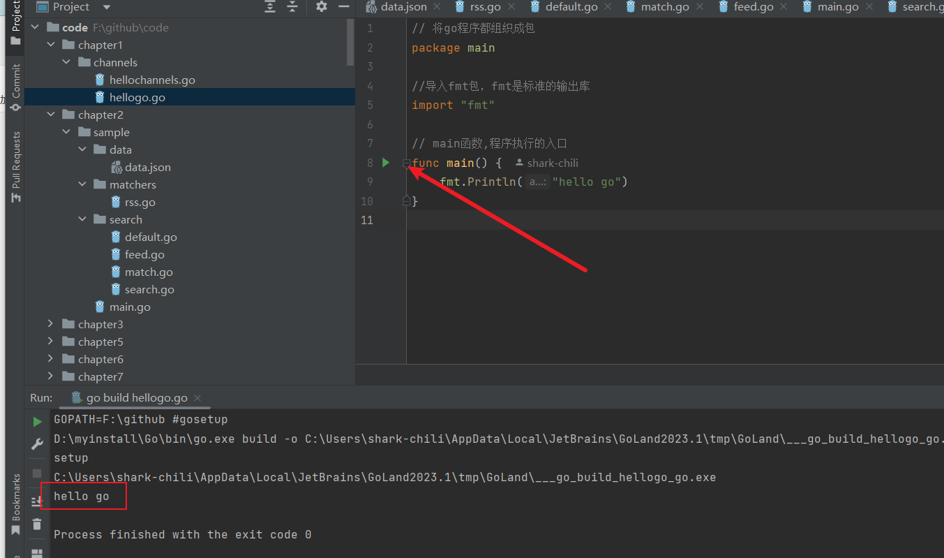 fmt.Println("hello go")