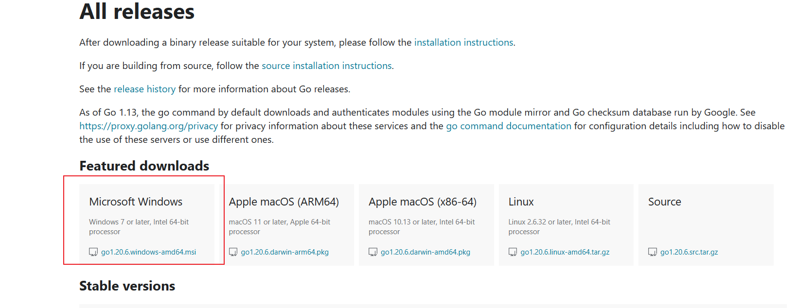 首先我们需要到Go官网下载Go dev,地址如下: