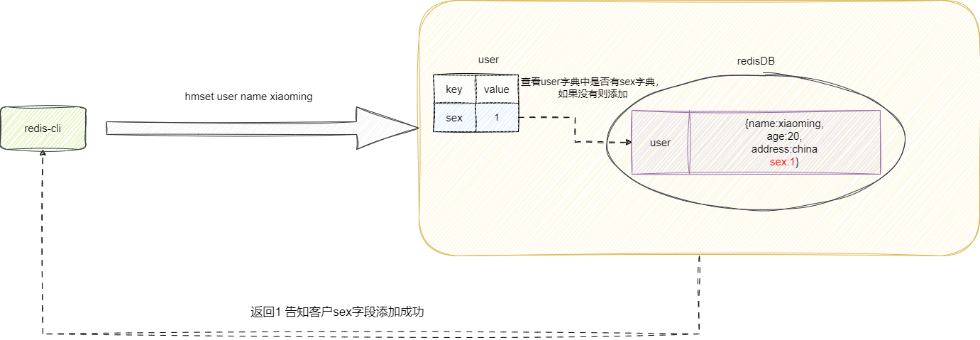 # 添加单字段到字典(hset指令)