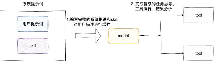 (技能):一组提示词、示例、参考资料这些专家经验打包而成的知识单元,引导模型按照特定的思维框架进行推理工作。 - ReAct(Reasoning+Acting):
