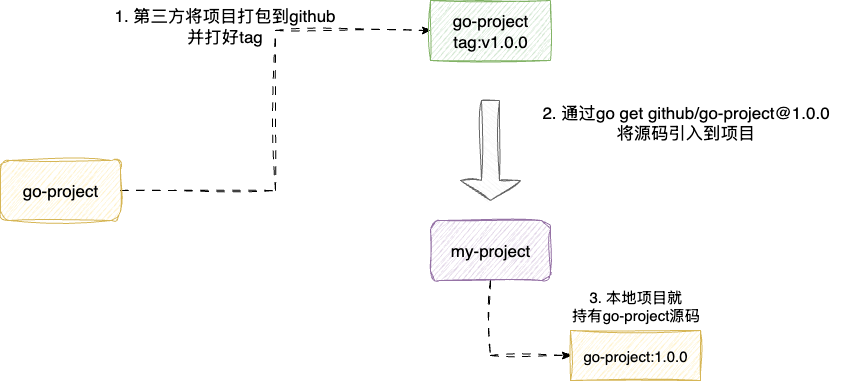 对于java开发而言,每一个项目完成之后都会打成一个jar包即中间层代码,所以可借由依赖包管理工具maven完成导入,而go语言没有中间字节码这样的一个过程,所以引入第三方依赖的方式都是通过源码,随着人们对于方案的不断探索,对于go语言的方式管理也别有了如下两种主流方案: