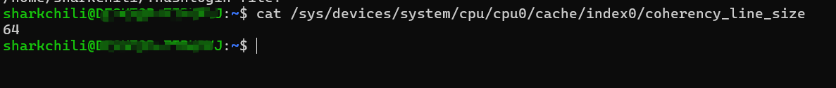 关于cache line的大小可以使用命令键入如下指令进行查看: